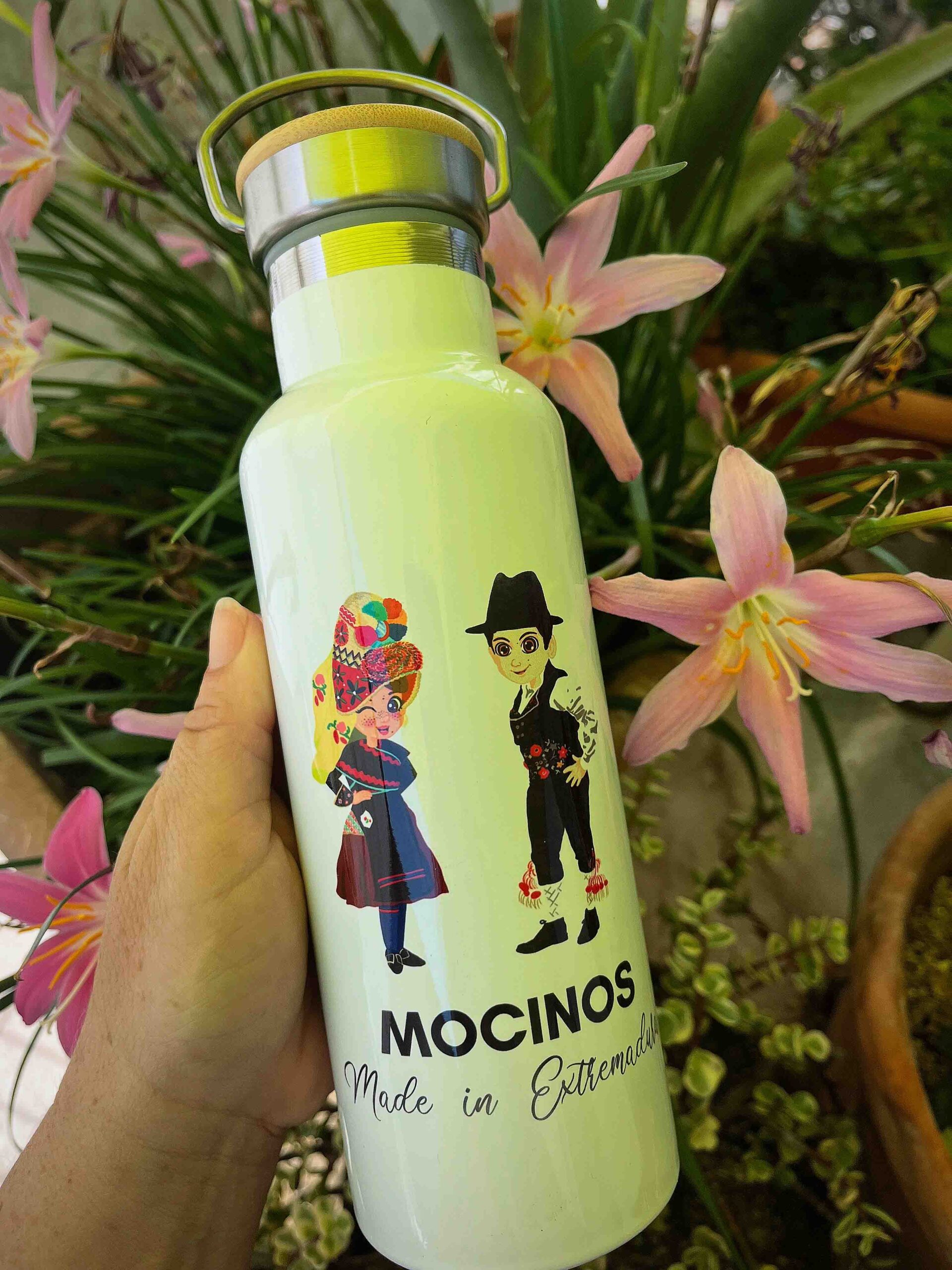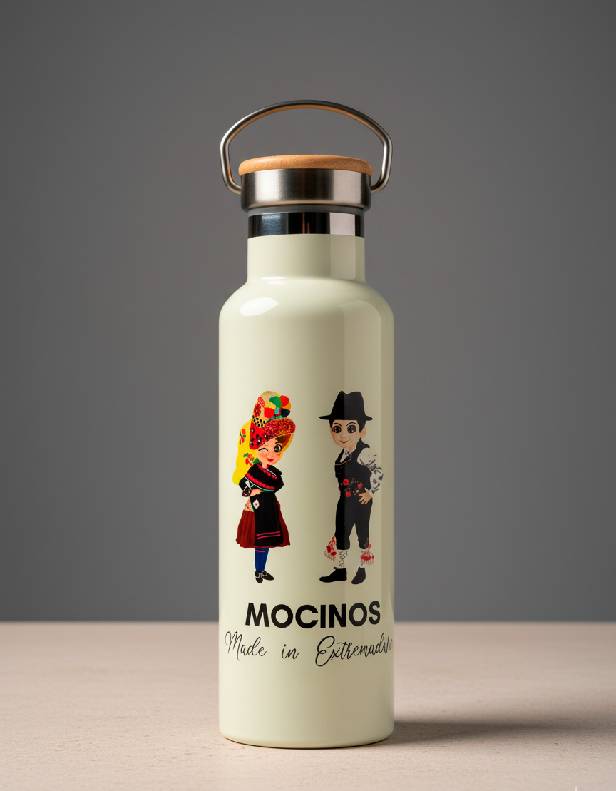 Termo de acero inoxidable con nuestros Mocinos. Pa el café calentito o el agua fresca.
