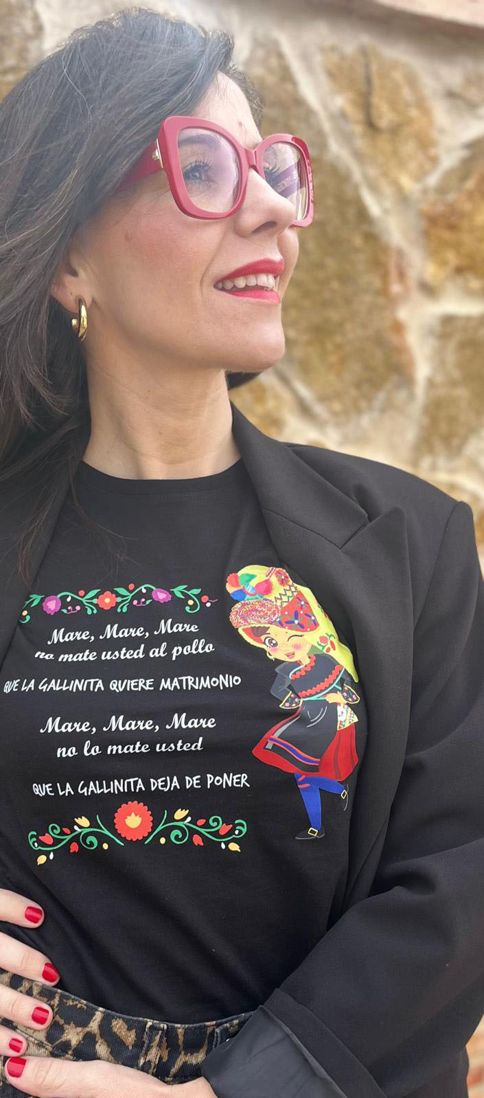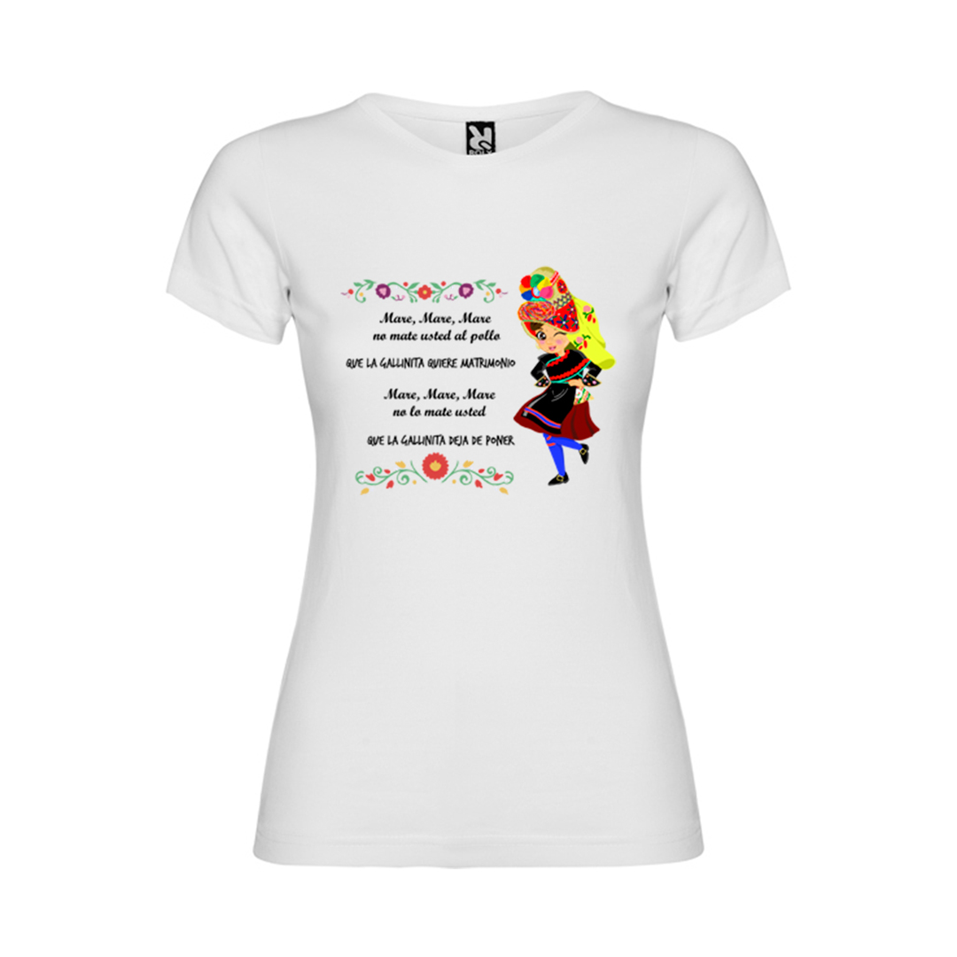La camiseta “Mare Mare” celebra y ensalza una de nuestras jotas más populares ‘El pollo’ (o ‘El pollu’) originaria de Montehermoso y que ha viajado por medio mundo de la mano del grupo folklórico Sabor Añejo.