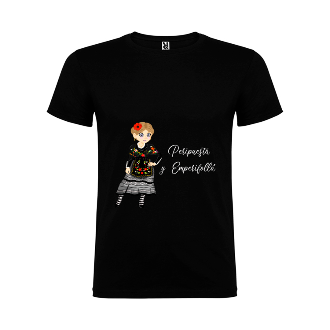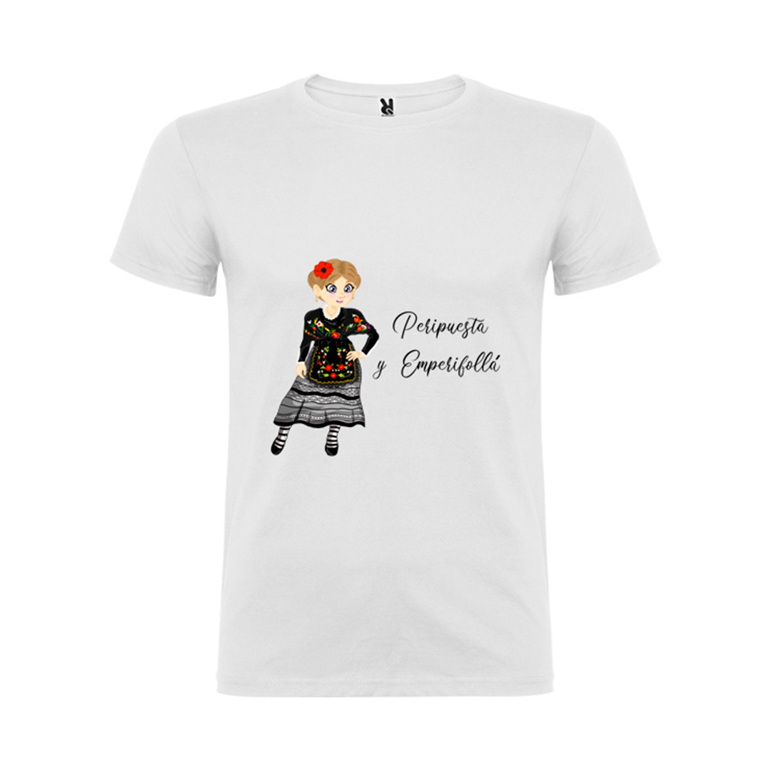 “Peripuesta y Emperifollá” es la camiseta perfecta para quienes viven la vida con alegría y disfrutan de la chispa de nuestras expresiones populares.